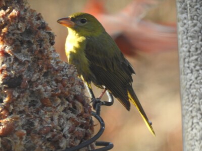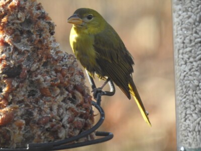 A female Summer Tanager was visiting the feeder this morning at the home of Melissa and Stephen Fischer in Wappingers Falls.
